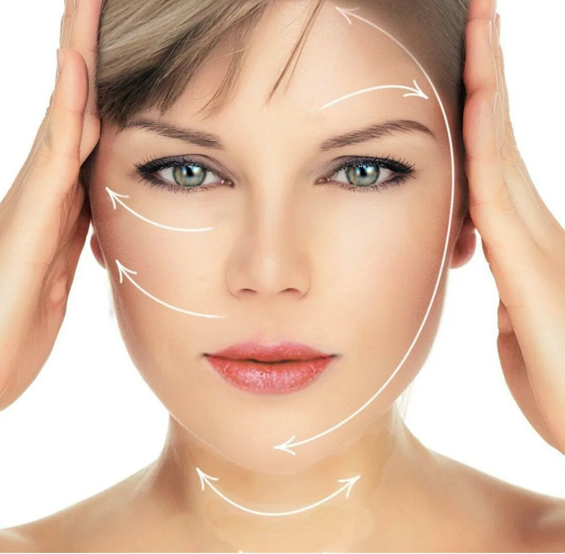 Руки под подбородок - подтягиваем овал лица, зону декольте и морщины на шее