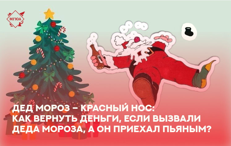 Новый год – самый волшебный праздник, где каждый верит в чудо. Многие родители хотят порадовать детей и вызывают Деда Мороза со Снегурочкой, чтобы они исполнили все желания, написанные в письме. Но что делать, если Дед Мороз оказался пьяным? Или вовсе заблудился? Или нагрубил, вечно куда-то спешил и пробыл в доме не больше 5 минут? Как же правильно вызвать Деда Мороза, чтобы все прошло как в сказке? Только представьте ситуацию: приезжает Дед Мороз без бороды и с перегаром, Снегурочка шумит, а дети не понимают, почему новогодние персонажи не как на картинках… Деваться некуда: стихи рассказаны, подарки вручены, а Дед Мороз со Снегурочкой требуют оплаты? Что делать? НЕ платить! Ваши права нарушены! Данные правоотношения регулирует Закон «О защите прав потребителей», а именно, статьи 29-31. Вызов Деда Мороза со Снегурочкой – это такая же услуга, как и, например, подстричься в салоне, и в данной ситуации вы сталкиваетесь с некачественным оказанием услуг, за что можете вернуть деньги. Более