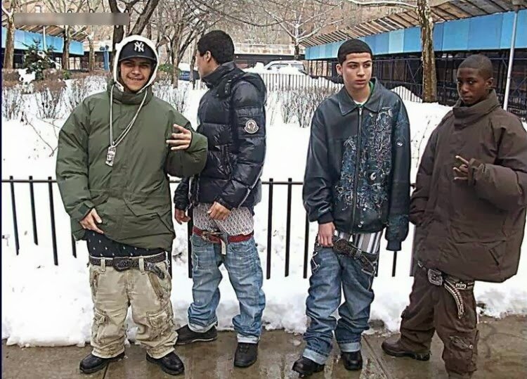 Предположительно такой тренд носить штаны зародился в тюрьмах США, где запрещено носить ремень и штаны просто спускаются и видно трусы.