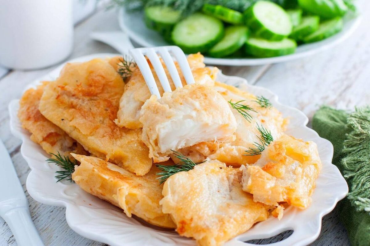 Минтай в кляре 📖 Ингредиенты: - Филе минтая - 0.5 кг - Сметана - 3 ст.л. - Яйца - 2 шт. - Мука - 50 г. 🧑🏻🍳 Приготовление: 1. Взбить яйца, муку и сметану. Должен получиться густой кляр. Соль по вкусу. 2. Нарезать рыбное филе тонкими полосками. 3. Окунаем полоски в кляр и обжарить с обеих сторон на фритюре. 4. Выложить готовую рыбку на салфетку, чтобы убрать лишний жир.