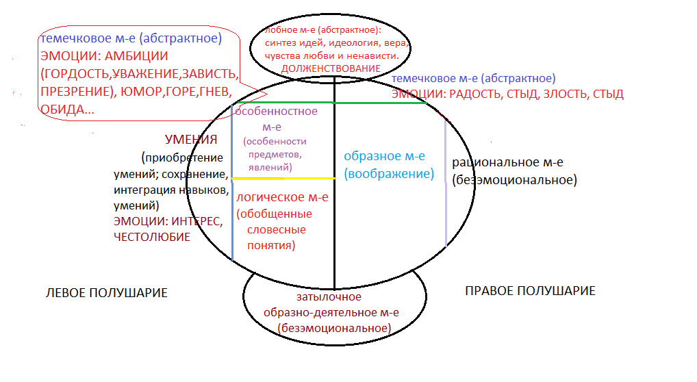 Собственно, новое здесь только то, что за последние два года изменилось понимание роли и функций лобного-абстрактного мышления. Теперь это не только синтез и мотив долженствования, но и формирование идей, идеологии, веры. В частности, веры в различные религиозные идеи, ну и многое из того, во что верят люди: любовь, права человека (либерализм), социализм, патриотизм, национализм, деньги, ценности... Любовь и ненависть - яркое проявление человеческих чувств, основанных на вере, т.е. предположениях о будущем развитии процессов. Буду развивать тему...