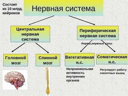 Периферийная нервная система разделяется на Соматическую и Вегетативную. Соматическая нервная система – часть периферийной нервной системы, которая занимается доставкой моторной (двигательной) и сенсорной (чувственной) информации до ЦНС и обратно. Соматическая нервная система собирает информацию от мышц, сухожилий, связок, суставов и передает ее в спинной мозг. Спинной мозг, при необходимости, по системе нервов дает указания усилить или ослабить функционирование иннервируемым структурам. Если не может исправить нарушение или изменить характер работы органа, он передает информацию в кору полушарий головного мозга.