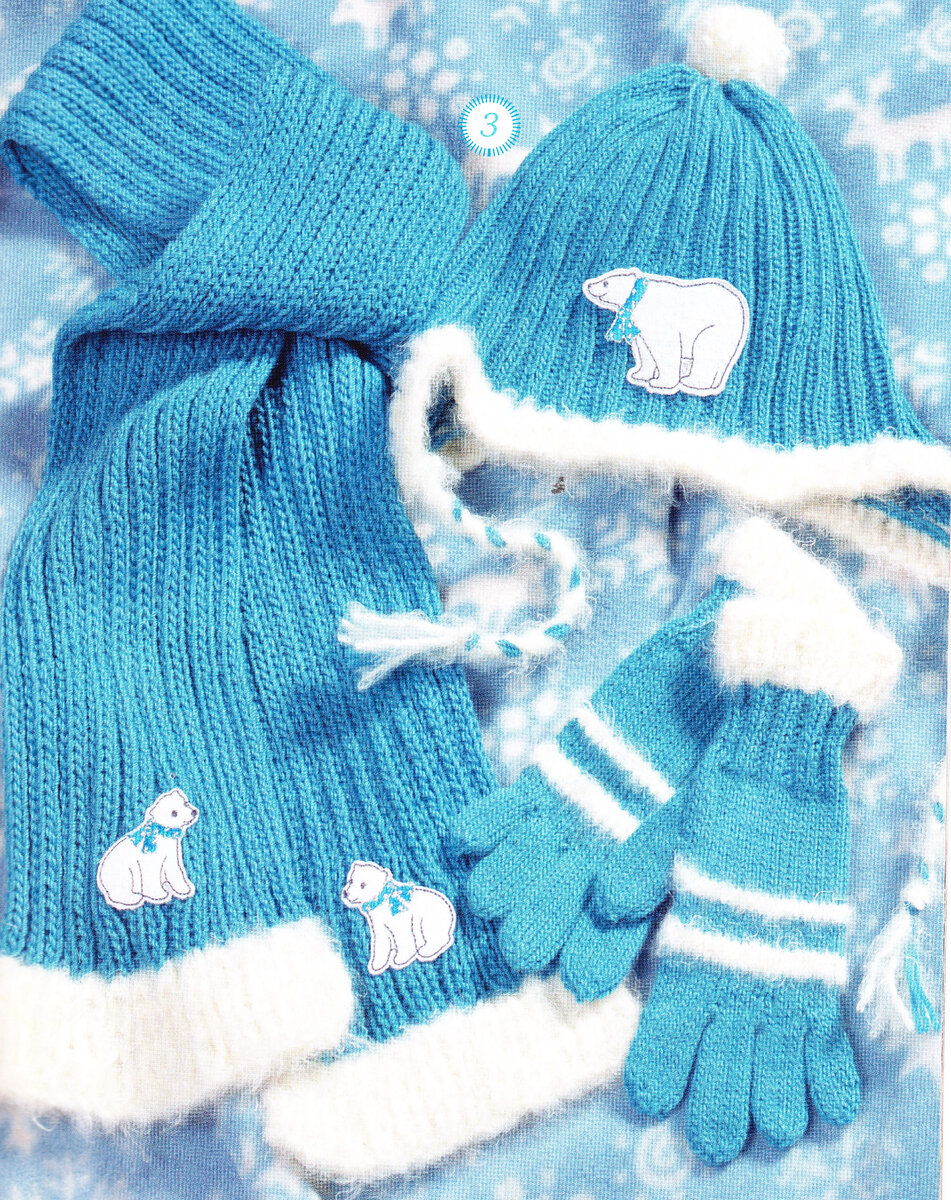 1. Шапка, шарф и перчатки с белыми медведями.