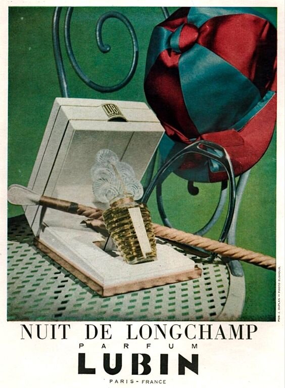 На канале я часто (и много) пишу про парфюмерию обывателям неизвестную. Хотя многие названия когда-то гремели так, что оставили после себя заметный культурный след. В литературе, в кино, в живописи. Nuit de Longchamp старинного французского парфюмерного дома Lubin как раз из таких феноменов. Как и сама компания Lubin, кстати. Созданная амбициозным торговцем после Французской революции, она вот уже 200 с лишним лет радует поклонников прекрасными ароматами. Впрочем, Nuit de Longchamp по меркам Lubin - молодые духи. Им в следующем году только 100 лет исполнится. Аромат создали специально для вечеринки после Парижских скачек в 1934 году. Всем приглашённым изысканным дамам вручали чудесный флакончик Nuit de Longchamp. Я тоже бывала на скачках пару раз в своей жизни. Конечно, не на таких роскошных, как проводятся на ипподроме Лоншан (Longchamp), но тем не менее я точно знаю, как причудливо стелется холодный утренний туман над зелёным полем; как пахнут разгорячённые быстрым бегом кони, а пахн