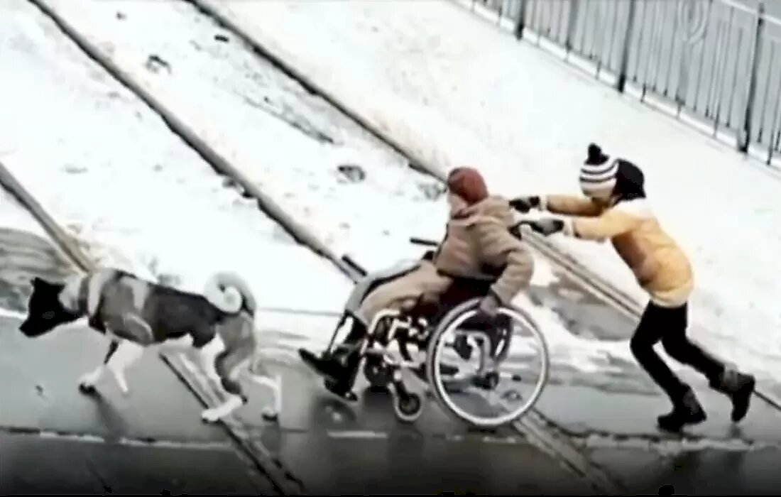 Мальчик с собакой помог женщине-инвалиду, застрявшей на трамвайных путях и стал героем соцсетей