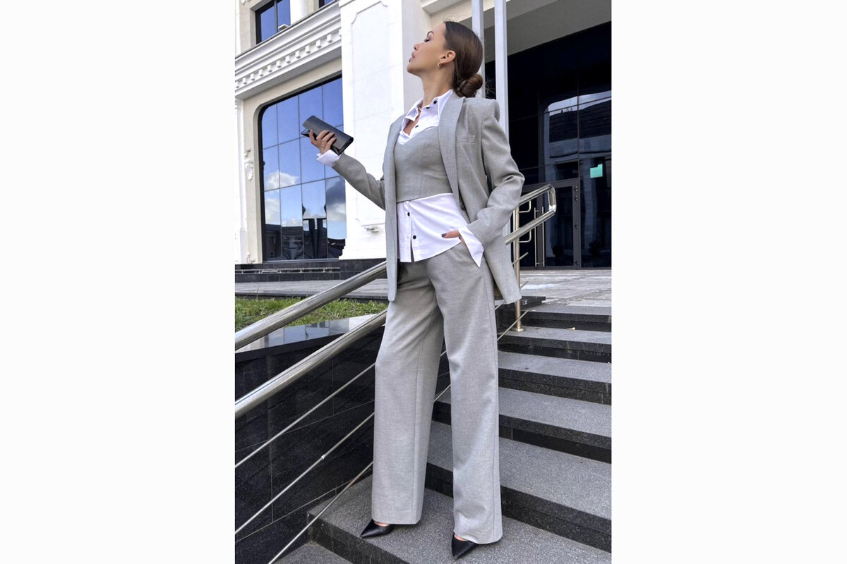 1. Широкие штанишки (символ нахальства и любви к себе) остаются с нами. Но не карго, а палаццо, потому что одеваемся все же для офиса. И дополняют их не кроссовки и бунтарский/расслабленный верх, а угластые рубашки, жилеты и пиджаки, а также более строгая обувь. Длина модных палаццо еще увеличилась, теперь они буквально касаются земли (да, я знаю, очень неудобно – я такие купила; но зато страшно красиво).