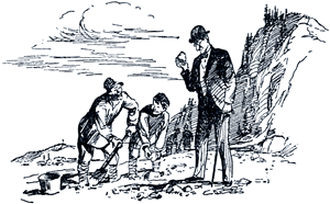 В наших-то правителях дураков все-таки многонько было. Иной удумает, так сразу голова заболит, как услышишь. А хуже всего с немцами приходилось. Другого хоть урезонить можно, а этих — никак. Свое твердят; — О! Я ошень понималь! Одному такому — не то он в министрах служил, не то еще выше — и пришло в башку наших горщиков уму-разуму учить. По немецкому положению, первым делом ученого немца в здешние места привез. Он, дескать, новые места покажет, где какой камень искать, да еще такие камни отыщет, про которые никто и не слыхивал. Вот приехал этот немец. Из себя худощавый, а видный. Ходит форсисто, говорит с растяжкой. В очках. Стал этот приезжий по нашим горочкам расхаживать. По старым, конечно, разработкам норовит. Так-то, видно, ему сподручнее показалось. Подберет какой камешок, оглядит, подымет руку вверх и скажет с важностью: — Это есть желесный рута! — Это есть метный рута! Или еще там что. Скажет так-то и на всех свысока поглядывает: вот, дескать, я какой понимающий. Когда с полча