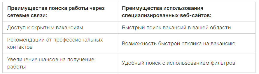 Одним из лучших способов найти работу является использование сетевых связей. Общение с профессиональными контактами может помочь вам получить доступ к вакансиям, о которых вы не знали. Это также могут быть ваши бывшие коллеги, друзья и семья. Попросите их о помощи их контактах и рекомендациях.
