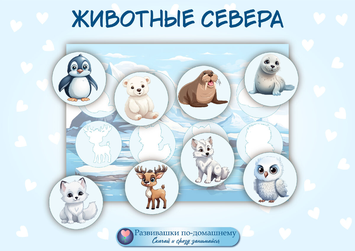 Как помочь ребёнку легко запомнить животных севера и одновременно подтянуть базовые знания и навыки. Комплект игр на липучках