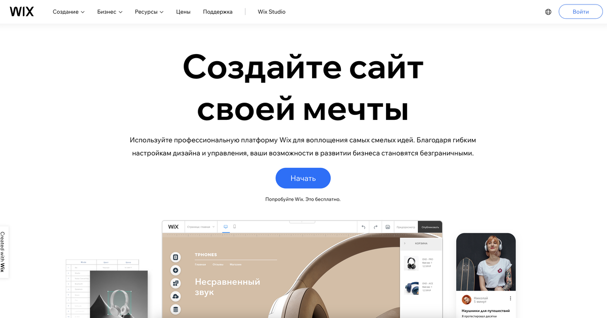 Wix является одной из самых известных платформ для создания сайтов, пользующейся популярностью более 96 миллионов пользователей по всему миру. Это универсальный инструмент, позволяющий создавать визитки, блоги, интернет-магазины и другие виды сайтов. Особенностью Wix является интуитивно понятный визуальный редактор, который оптимизирован для мобильных устройств и предлагает разнообразные шаблоны и функции. Важно: Wix перестал оказывать услуги пользователям из России. Для кого предназначен конструктор Wix Wix идеально подходит как для новичков, так и для профессиональных разработчиков. Благодаря множеству шаблонов и визуальному редактору, начинающие пользователи могут легко создать сайт, а профессионалы - использовать продвинутые функции, такие как Wix ADI и Editor X для более сложных проектов. Главное о конструкторе Wix Wix предлагает широкий спектр функций для создания сайта, включая интеллектуальную систему Wix ADI для автоматизированного создания сайтов, множество шаблонов, интеграц