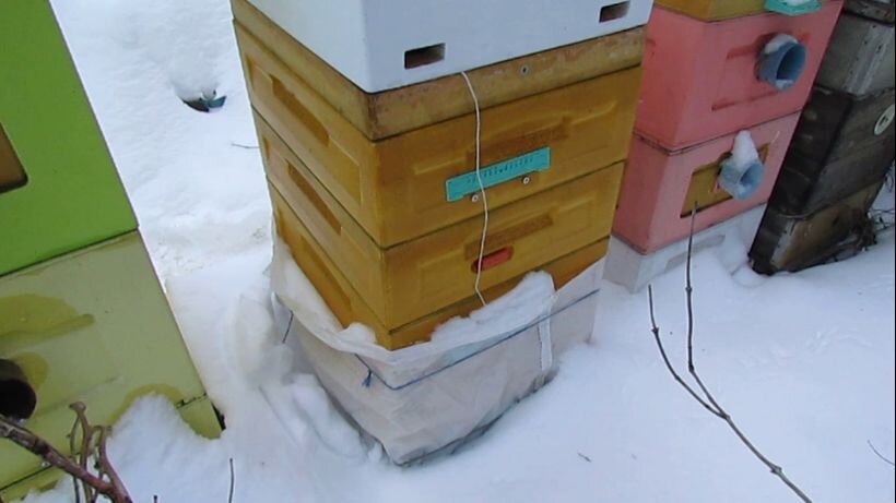 зимовка пчел в ульях из дерева под пленкой и сплошным дном, результат такой зимовки