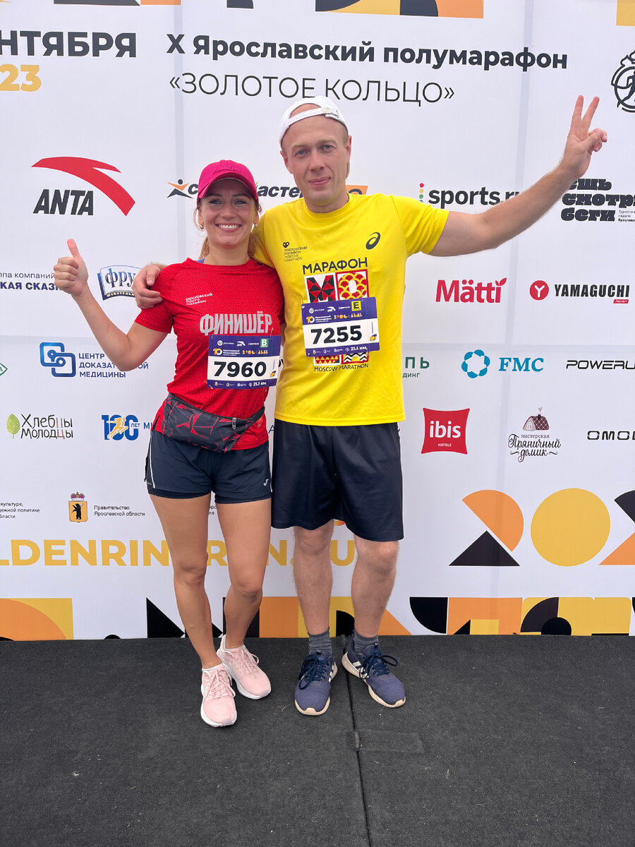 В этом году у меня было две половинки (половинкой называют полумарафон - дистанция 21,1 км). Одну бежала в августе в Москве. Время меня совсем не порадовало, 2 часа 20 минут. Можно конечно найти много оправданий, например, неудобные кроссовки и погодные условия. Перед стартом пролил дождь, потом палило солнце , была сильная влажность, испарение от асфальта и жара. Бежать действительно было тяжело, но по ощущениям после финиша - «я могла лучше!» Как будто не хватило мотивации и я себя жалела, даже местами останавливалась и шла пешком. А меньше чем через месяц, в сентябре, я пробежала еще одну половинку в Ярославле. Время было 1:58! Выбежала из двух часов, вот это результат! А причиной стало то, что я была не одна)) Впереди бежал мой знакомый Алексей, и мне было тупо стыдно останавливаться))) Я знала, что он прибежит первым и будет ждать меня на финише, и не хотела сильно от него отставать! Это меня здорово мотивировало! Поэтому если вы не можете сами себя мотивировать или не достаточ