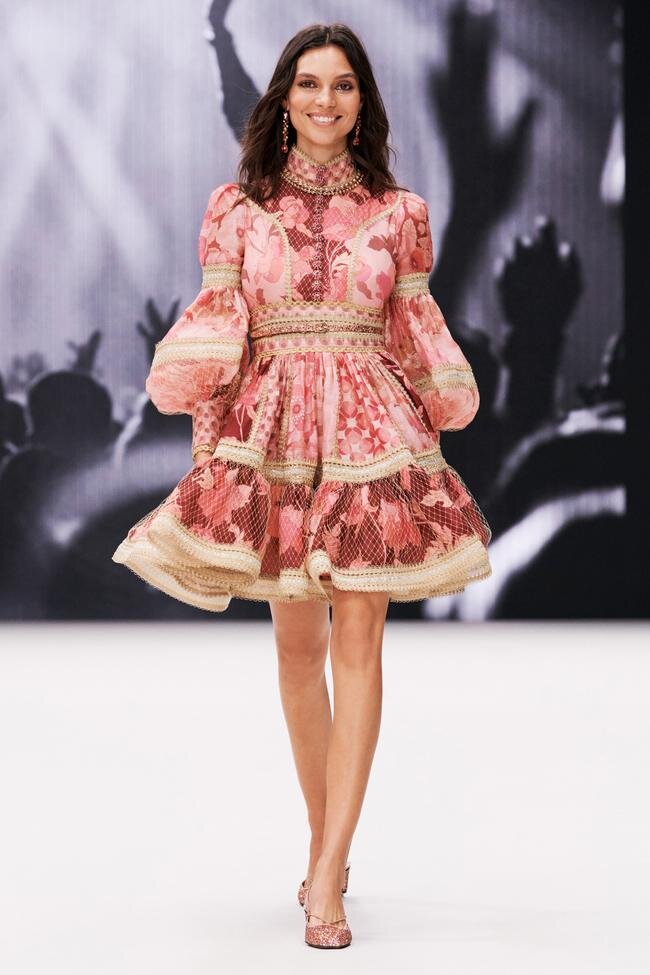 И очень хочется в первую очередь обратить внимание на улыбку модели!) Не сухое, каменное лицо, а именно сияющее, красивой женщины, да ещё в таком платье! Такие платья можно долго рассматривать, так как там очень интересный микс принтов, какой то тесьмы, всё это складывается вот в такую красивую "картину". А как это всё женственно) И я такую модель платьев очень люблю, хотя практически все стилисты сейчас пишут, что такие платья не актуальны, но выходит тогда ZIMMERMANN вообще отстал от всех и вся?)) а может это и есть личный стиль?? А я именно за личный стиль и если мне нравится такое, то я буду носить это, но не то что мне вообще не интересно.