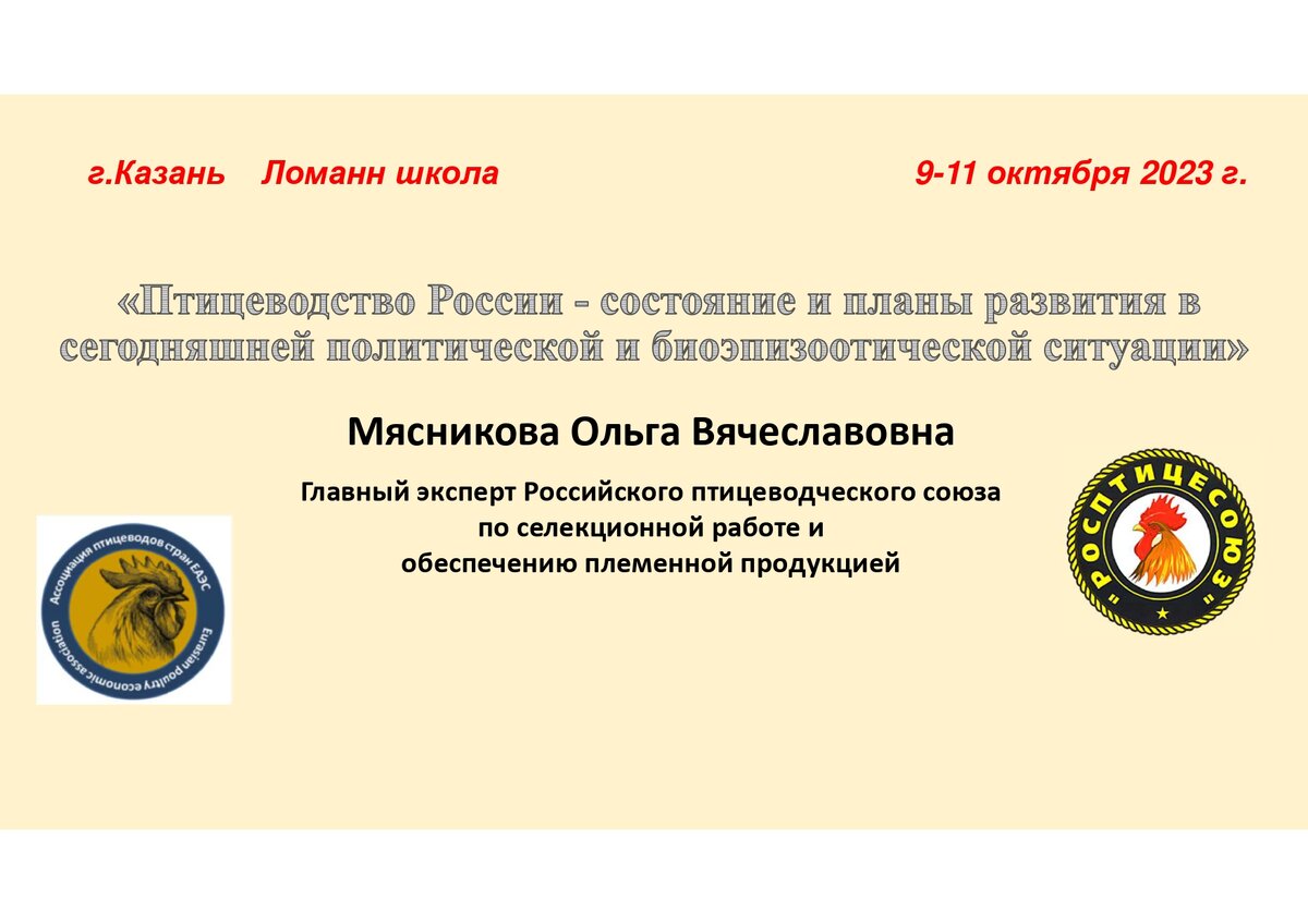 Птицеводство России - состояние и планы развития сегодняшней политической и биоэпизоотической ситуации