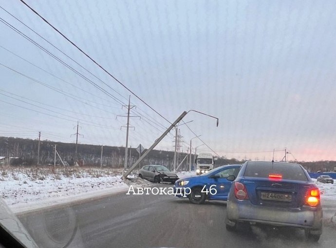 В Курске машина врезалась в столб, из-за проводов на дороге парализовано движение