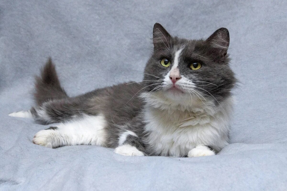 Этот красивый пушистый котик голубого окраса с белым счастливо жил у бабушки на первом этаже многоэтажного дома. Бабуля звала его Мурзиком. К окну квартиры приставлена деревянная лесенка, по которой Мурзик забирался и спускался из окна на улицу. Все было благополучно, пока бабуля не заболела😞 В один из зимних дней котик вернулся домой по лестнице, а окно оказалось закрытым😞 Мурзик ждал на морозе, но окно так и не открылось. Единственным убежищем в зимнюю стужу стал подвал дома. Так ласковый, супер добрый, красивый котик стал уличным, никому не нужным😞 Мурзик, как верный Хатико, приходил регулярно к себе домой, но его не пускали. А одним весером: холод, мороз, снег, метель, вечер.... и силуэт — плотно прижавшись к стене дома под окнами бывшей хозяйки сидит мокрый продрогший Мурзик😞 Оказалось, что продух в подвал зашили металлом, и он не смог спрятаться от снега. Идити котику было некуда. Бедный, несчастный котик не заслужил такой печальной участи. Добросердечная женщина, которая уви
