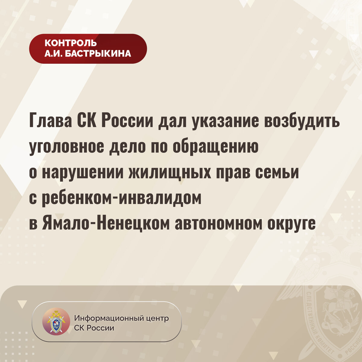Глава СК России дал указание возбудить уголовное дело по обращению о нарушении жилищных прав семьи с ребенком-инвалидом в Ямало-Ненецком автономном округе