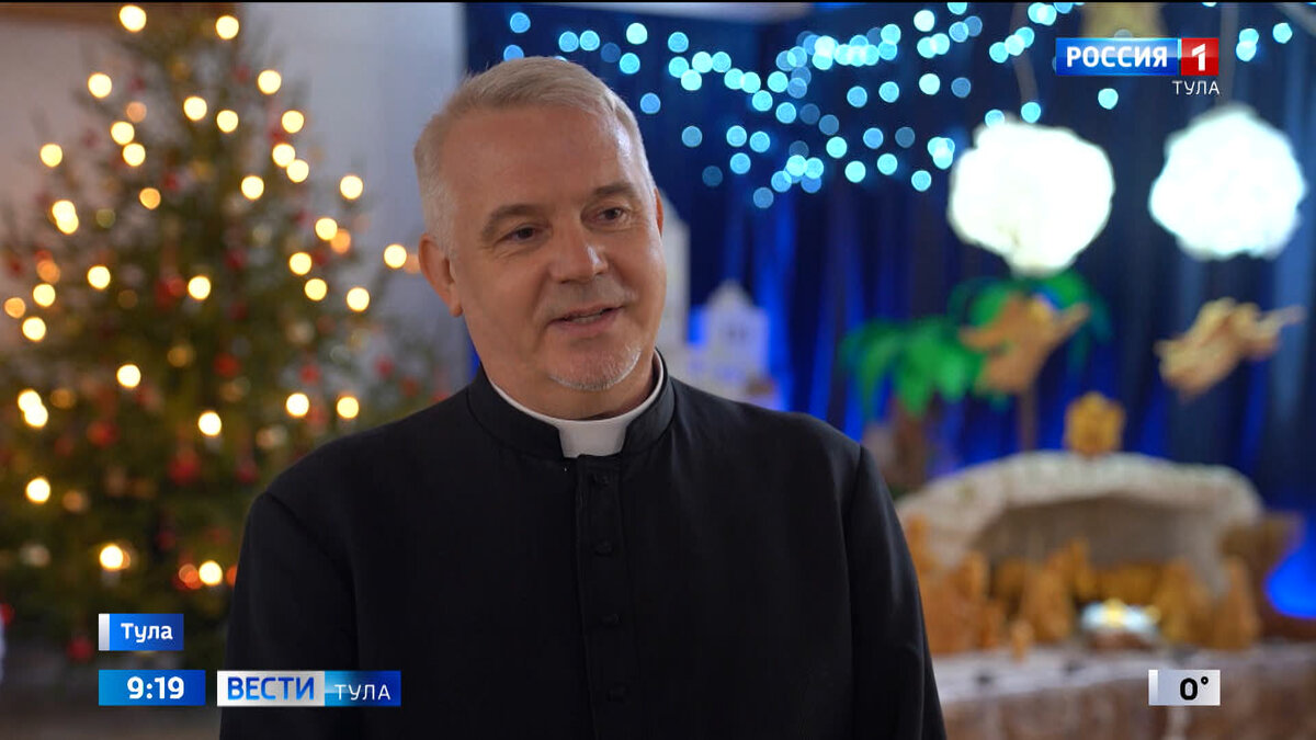 Великий праздник Рождества уже встретили католики. Богослужение состоялось в единственном в Туле католическом храме Святых Апостолов Петра и Павла. По традиции в честь праздника в нём установили и украсили рождественские ели, поставили вертеп, фигурки для него были выполнены одним из прихожан. В этот день в храме праздник объединил людей разных возрастов и национальностей. Отец Александр Кревский, настоятель Тульского католического храма и прихода: Это праздник, который особым образом определяет начало спасения человека. В этом году исполняется 800 лет, как впервые святой Франциск изобразил вертеп рождественский. В Италии в этом году францисканцы получили специальную благодать от Папы Римского. В во всех францисканских общинах и храмах можно получить полную индульгенцию до 2 февраля.Каждый храм, посвящённый Христу становится в Рождество своего рода Вифлеемом.Мне бы очень хотелось пожелать всем людям доброй воли, чтобы Господь обрёл место в человеческом сердце, одарил счастьем, радостью