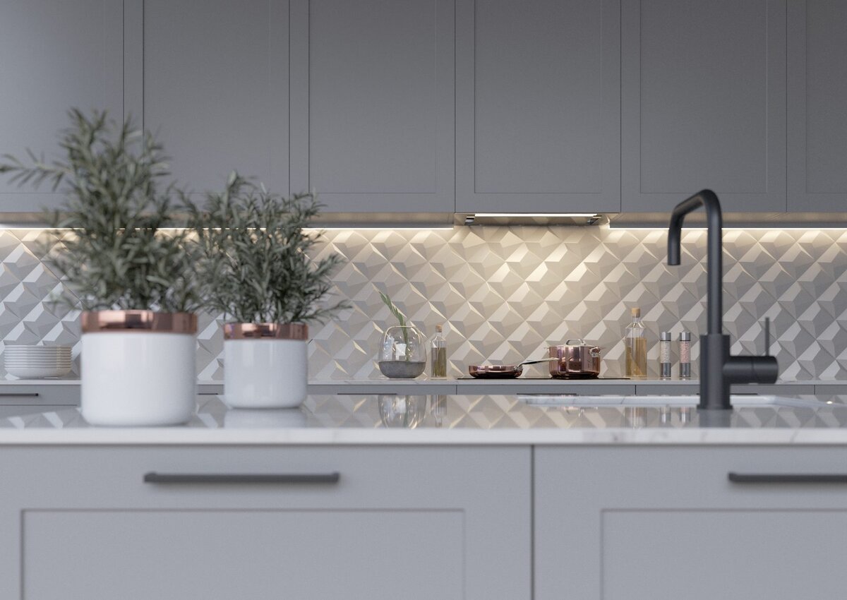 Керамическая плитка или керамогранит являются самыми популярными материалами для отделки кухонного фартука. Эти материалы отличаются высокой износостойкостью, жаропрочностью и не боятся воздействия влаги и химических веществ, а также легко чистятся. Если вы хотите самостоятельно выложить фартук на кухне, то рассмотрим ниже все этапы. Подготовительные работы. До начала работ необходимо определиться с типом плитки и необходимым количеством. Прежде чем идти магазин, замерьте размеры будущего фартука. Распространенная высота фартука – 60 сантиметров. Но встречаются и небольшие – 48 сантиметров. Причем плитка должна на пару сантиметров заходить за напольные шкафы. Специалисты рекомендуют вычисленный объем плитки увеличить еще на 10-15%, так как в ходе работ она может повредиться. После выбора плитки можно переходить к выбору плиточного клея. (Как правильно выбрать плиточный клей мы уже писали ранее в статье - ее можно прочитать здесь.) Так же необходимо подготовить основание. Стены должны б