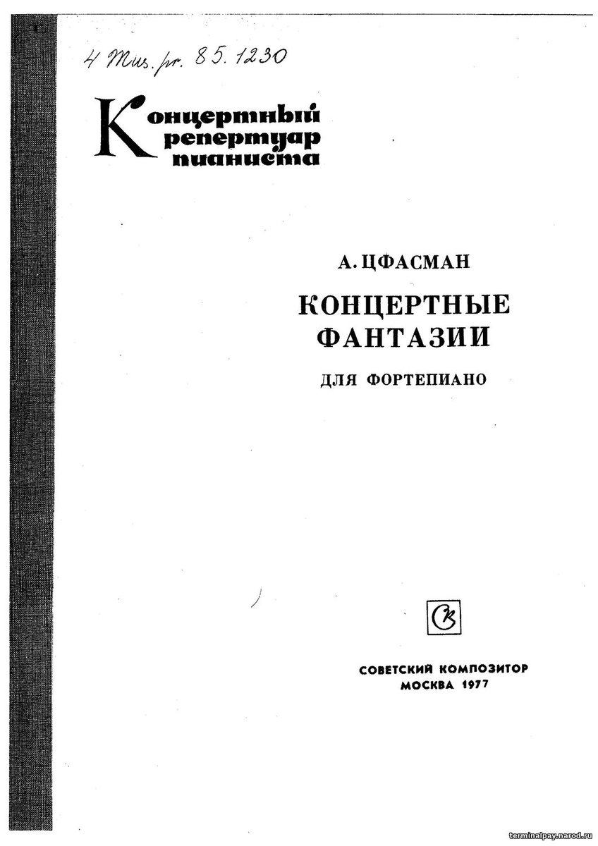 Ноты для фортепиано.Ноты здесь:https://terminalpay.narod.ru/shop/187650/desc/koncertnye-fantazii-dlja-fortepiano-a-cfasman-1977