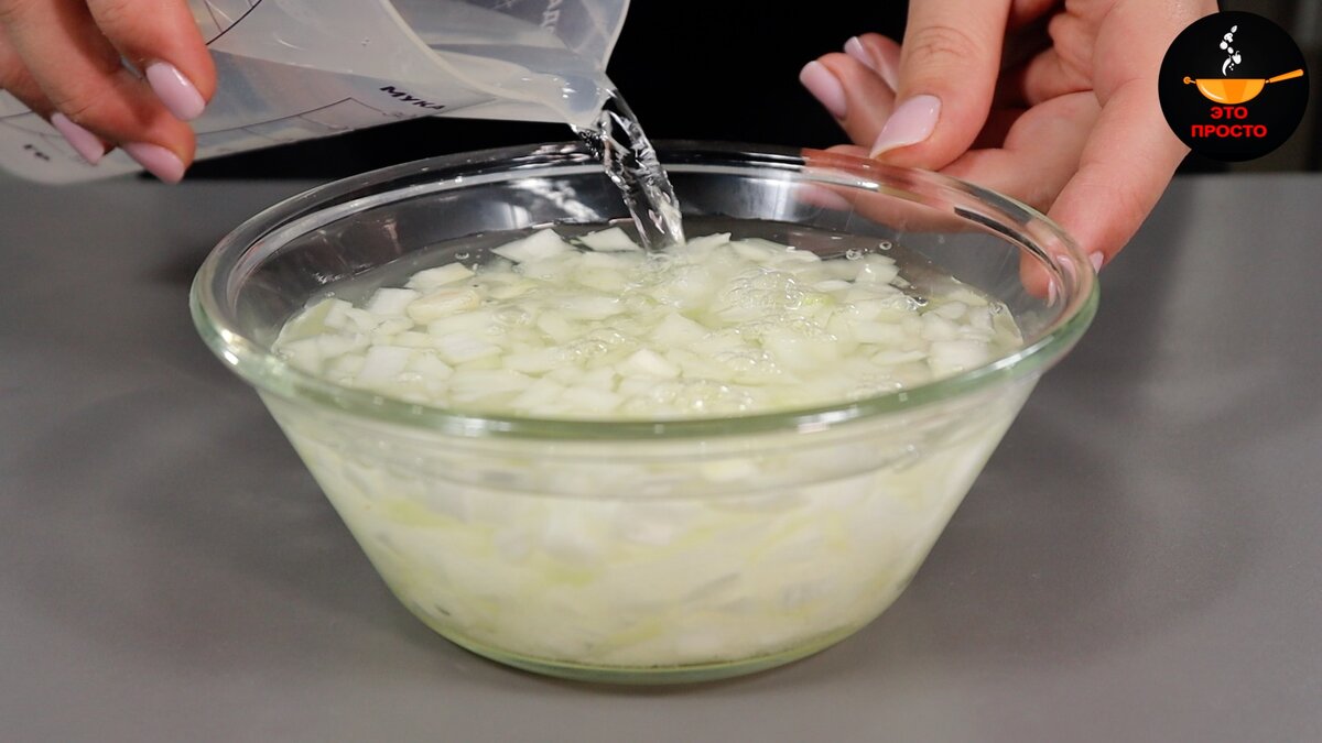 Если хочется попробовать по-настоящему новогодний салат, то предлагаю вам мой вариант салата с мандаринами, грецким орехом и ещё несколькими секретными ингредиентами. Уверена, что «Новогодний» салат будет фаворитом на вашем праздничном столе! ИНГРЕДИЕНТЫ: куриные бёдра - 4 шт. морковь сырая - 1 шт. (150 г) грецкие орехи - 50 г изюм - 50 г сыр твёрдый - 200 г чеснок - 1 зубчик маринованный лук - 1 шт. майонез - 150 г мандарин - 1 шт. Для маринования лука: лук - 1 шт. сахар - 2 ст.л. уксус (9%) - 3 ст.л. тёплая вода СПОСОБ ПРИГОТОВЛЕНИЯ: Для начала замаринуем лук. Добавляем к нему 2 ст.л. сахара, 3 ст.л. уксуса (9%) и заливаем лук тёплой водой так, чтобы она покрыла его полностью. Перемешиваем и оставляем лук мариноваться на полчаса. Одну, довольно крупную морковь, натираем на мелкой тёрке. 50 г грецких орехов измельчаем при помощи ножа. 200 г твёрдого сыра натираем на крупной тёрке. 4 куриных бедра отвариваем в подсоленной воде, остужаем и затем делаем вот такие небольшие рваные кусочки