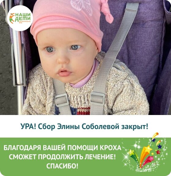Вы помогли спасти маленькую принцессу Элину! Малышка сможет продолжить лечение от ретинобластомы! Спасибо за вашу неоценимую помощь!