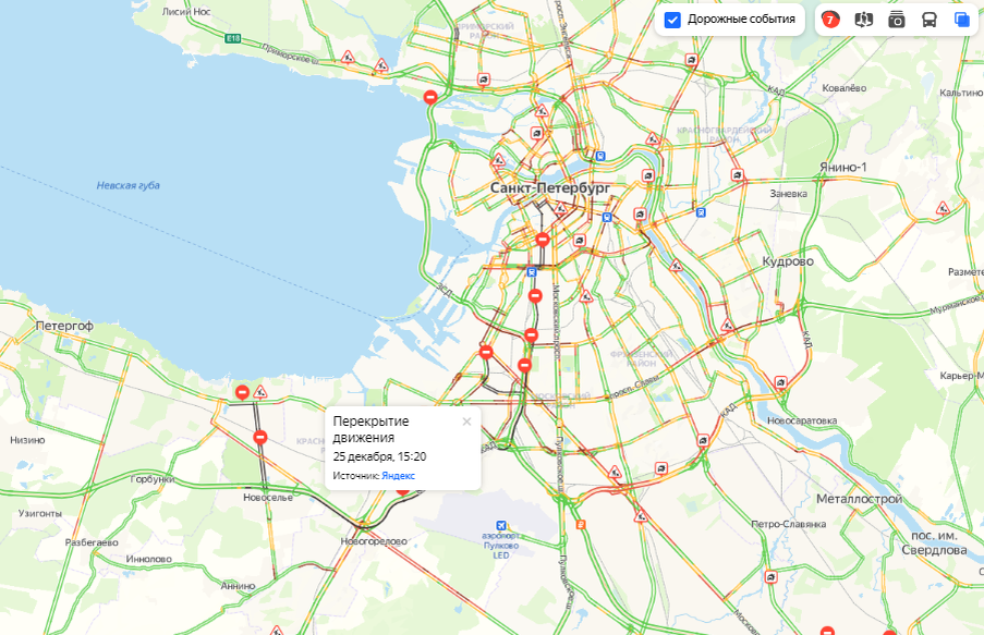 Саммит в Петербурге собрал аномальные пробки на юге 25 декабря