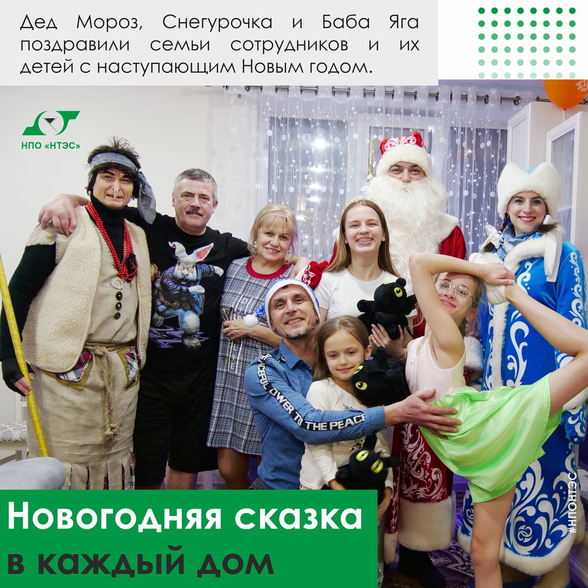 Именно поэтому в предновогоднюю неделю Дед мороз, Снегурочка и Баба Яга отправились поздравлять семьи сотрудников и их детей. Почти тридцать семей навестили сказочные персонажи, разыгрывая целый спектакль в каждом доме. Никто не остался равнодушным - ни взрослые, ни дети, а дома и квартиры наполнялись смехом и радостью.