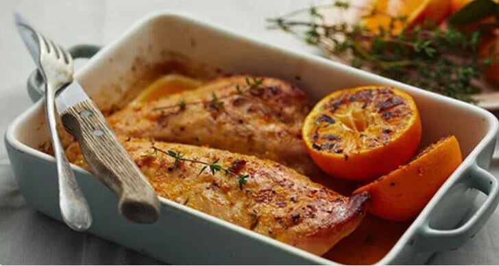 Индейка или филе курицы в апельсиновой глазури - это вкусное и ароматное блюдо, которое можно легко приготовить. Праздник к нам приходит и мы активно или пассивно готовимся к Новому году. Украшаем свой дом, готовим подарки для своих любимых, родных, коллег... Не стоит ждать праздника, чтобы полакомиться вкусными и простыми блюдами. Медово-апельсиновая глазурь с веточкой свежего тимьяна превратит обычную грудку индейки в блюдо, достойное любого праздника. Такую индейку можно подавать как основное блюдо, а можно дать ей остыть, нарезать тонкими ломтиками и сервировать в качестве закуски. Нам понадобится Смазываем грудку мягким сливочным маслом, приправляем солью и перцем и выкладываем в форму для запекания. Накрываем фольгой и ставим в духовку, разогретую до 190 градусов. Время запекания зависит от размера грудки. Целый кусок 1. 5 кг - на 2 часа, кусочки меньше - на меньшее время, одного часа достаточно. Тем временем готовим глазурь: в ковшик добавляем сок и цедру 1 апельсина, мед, тимь