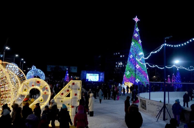 В 2023 году было принято решение отказаться от новогоднего фейерверка. В остальном концепция новогоднего городка не изменилась. Ранее в центре города смонтировали «звездное небо». Это шесть километров гирлянды и 6000 игрушек.