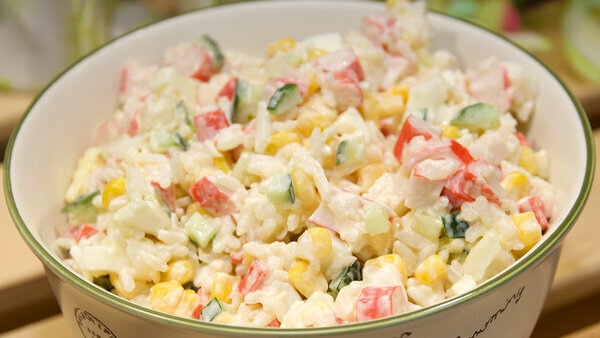 По многочисленным просьбам в этой статье я собрала самые популярные рецепты салатов на моём канале. Все они яркие, вкусные, необычные и любимые многими зрителями. Рецепт №1. Крабовый салат ИНГРЕДИЕНТЫ: крабовые палочки – 400 г варёные яйца – 4 шт. свежий огурец – 1шт. лук - 1 шт. кукуруза консервированная – 1 банка (425 мл) рис – 180 г соль – по вкусу майонез зелень Для маринования лука: лук- 1 шт. сахар – 2 ст.л. уксус – 3 ст.л. Начнём с самого простого салата, но, как ни странно, «Крабовый» салат набрал больше всего просмотров. Для салата с крабовыми я обязательно мариную лук, так вкус получается нежнее. А ещё кладу рис и знаю, что многие хозяйки вместо риса добавляют картофель, а некоторые и вовсе готовят без риса и картофеля, но добавляют морскую капусту. Вариантов приготовления данного салата много, но большинству зрителей понравился именно мой вариант приготовления, поэтому с уверенностью рекомендую и вам попробовать приготовить старый рецепт немного по-новому. Рецепт №2. Салат