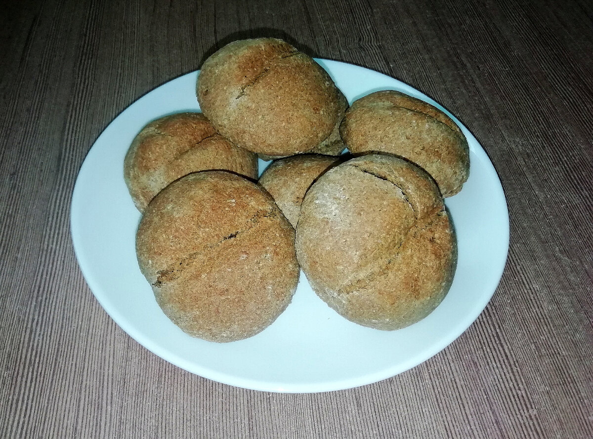 С некоторых пор я стараюсь есть магазинный хлеб только в редких случаях, но если мне позволяет время и есть желание, то я пеку быстрые полезные булочки. Да, у меня есть хлебопечка, но в последние года два я её совсем не достаю, она очень шумит и печет хлеб по 3-4 часа. Вариант с простыми хлебными булочками в духовке кажется мне наиболее быстрым и экономичным. В этой статье я поделюсь с вами рецептом ржаных булочек с добавлением цельнозерновой муки. Если использовать эти два вида муки, то получается очень интересное вкусовое сочетание и консистенция теста. Булочки исключительно из ржаной муки получаются немного влажными, а с добавлением пшеничной цельнозерновой муки мы получаем более рыхлую и рассыпчатую консистенцию внутренней части булочки и хрустящую корочку одновременно. Для таких булочек я использую следующие ингредиенты: Крахмал и соду я кладу потому, что не использую разрыхлитель, вместо них можно взять 1 чайную ложку разрыхлителя. Как приготовить ржаные булочки Готовить эти було
