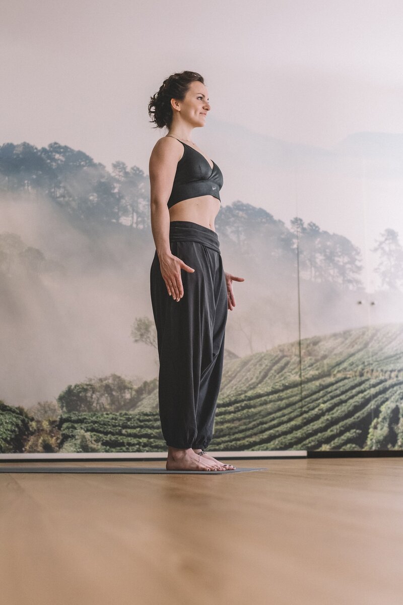 Открыть для себя живительную силу йоги никогда не поздно. Регулярные уроки помогут пожилым сохранить активность, хорошее настроение, а с этим и здоровье. Однако перед тем, как развивать подвижность, хорошо бы научиться правильно стоять. Не на голове, как кто-то мог бы подумать) Ведь, если речь заходит о йоге, многим сразу приходят на ум самые изощрённые позы. База этой дисциплины – простые формы, с их освоения стоит начинать всем, не только людям в элегантном возрасте. Важнейшая из них – Тадасана (она же Поза горы). Помните памятник Гагарину на Ленинском проспекте? Натянутая и собранная фигура космонавта будто вот-вот взлетит вверх. Именно так и выглядит асана. Особое внимание в ней уделяется стопам – основе, поддерживающей все остальные «этажи». Непонимание того, как работают мышцы нижних конечностей и формируется свод, рушит всю архитектуру асаны: за стопой плывет колено, внутрь закручивается бедро, таз перекашивается – и пошло-поехало. Чтобы этого не произошло, необходимо распред