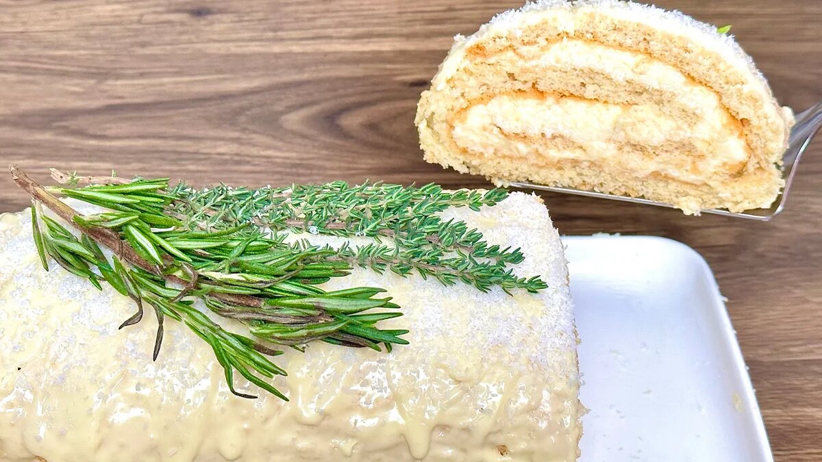 Когда времени в обрез, приготовьте бисквитный рулет "Рафаэлло" - красивый десерт в празднику!