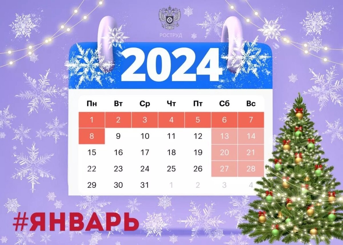 В Роструде напомнили, сколько будут длиться новогодние праздники Поскольку 30 и 31 декабря приходятся на субботу и воскресенье, последний рабочий день в этом году будет 29 декабря. Согласно Трудовому кодексу России, 1–8 января считаются нерабочими праздничными днями. Таким образом, люди будут отдыхать целых 10 дней. Первый рабочий день в 2024 году выпадет на вторник, 9 января. В январе также отмечаются несколько профессиональных праздников, включая День работника прокуратуры (12 января), День российской печати (13 января) и День ювелира (31 января). Кроме того, 25 января в России отмечается День студента.