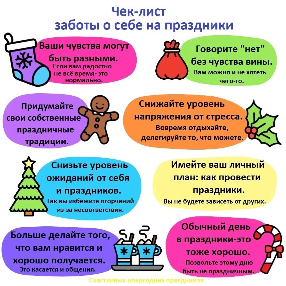 Итак, что же вы можете сделать уже сейчас, что бы не выгореть за праздники? - Предлагаю взглянуть на чек- лист.