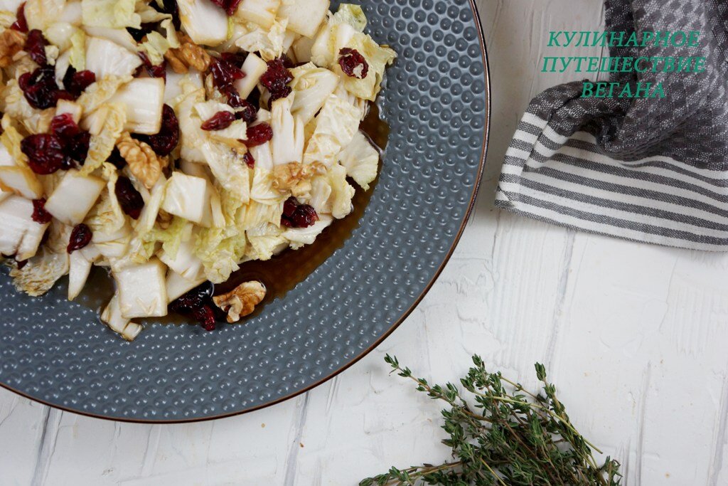 Зимний салат из китайской капусты и сушенной клюквы