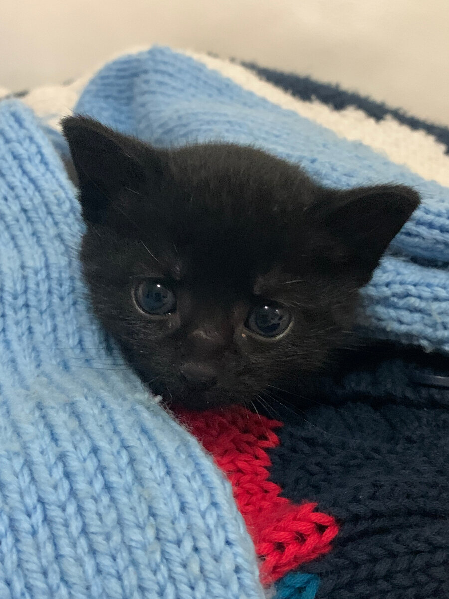 Так вот вернусь к истории , я в размышлениях натыкаюсь на фото в интернете черного кота. как он был прекрасен этот котенок , и отправляю его маме со словами: КОГДА- НИБУТЬ Я ЗАВЕДУ СЕБЕ ТАКОГО! обязательно черного. На следующий день в кругу знакомых я проговорилась о своем тайном желании, и в ту же секунду как я описываю свою любовь к черным котам одной девушке приходит смс с фотографией черного котика, прикреплю его здесь , просто
