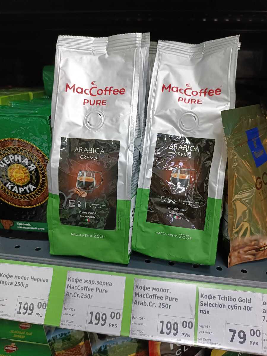 Начну с продуктовых полок, наверное. Тут новинку увидела, бренд МакКоффе в Фикс Прайсе теперь представлен в виде пакетов в зернах и молотого кофе!