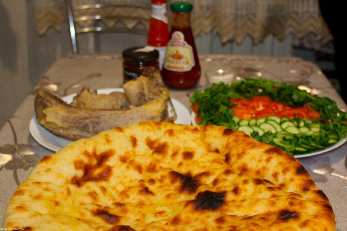 Пироги, о которых я так часто упоминаю в статьях не являются повседневной пищей. Но если приезжает гость, организовываются различные праздники, всевозможные семейные торжества осетины, как и другие народы, являющиеся приверженцами традиционной веры, накрывают стол (осет. ирон фынг), на котором присутствуют пироги. Помимо пирогов, основной пищей на праздничный стол и не только является мясная, состоящая преимущественно из свинины, говядины, баранины. Мясо хорошо проваривается целой тушей или отдельными частями. И именно отварное мясо (осет. къуыдыр фых дзиза) считается наиболее распространённым и полезным блюдом. (Осетинские пироги в Крыму? Где "Алания"?) В прошлом приправой к мясу служили рассол (осет. цаехдон) из соли, измельчённого чеснока и кефира или сметана (могло быть кислое молоко) с добавлением листьев стручкового перца (слегка проваренных) и др. Хочу заметить, на сегодняшний день многие предпочитают более острую приправу или наличие в ней измельчённой зелени (зачастую кинзы).