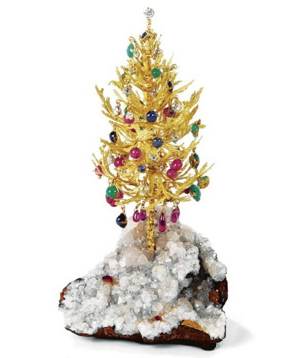 Эта подборка посвящена ювелирным изделиям с новогодней и рождественской тематикой разных лет. Эти традиционные украшения выпускают ежегодно многие ювелирные фирмы. А такие компании как «Georg Jensen» (Дания) создают специальные рождественские коллекции, которые включают елочные украшения и украшения интерьера. Ювелирная рождественская елка на подставке из горного хрусталя, украшенная рубинами, сапфирами, изумрудами и бриллиантами разной формы и огранки, Эндрю Грима, около 1970 г. Коллекция елочных украшений из серебра с позолотой, высота 10 см, Стюарт Девлин, Лондон. Стюарт Девлин выпускал по одной игрушке в год с 1981 по 1988 годы, внутри каждой – сюрприз, рождественская сценка. Елочные украшения «Сосулька» из серебра, высота 12,7 см, Gorham Mfg. Co, Провиденс, 1973-1974 гг. Елочный шар «Омела», золото, жемчуг, высота 14 см, дизайн Дона Полларда, Steuben, 1970 г. Золотой рождественский браслет с бриллиантами, изумрудами, сапфирами и рубинами. Брошь в виде рождественской елки, нефрит,