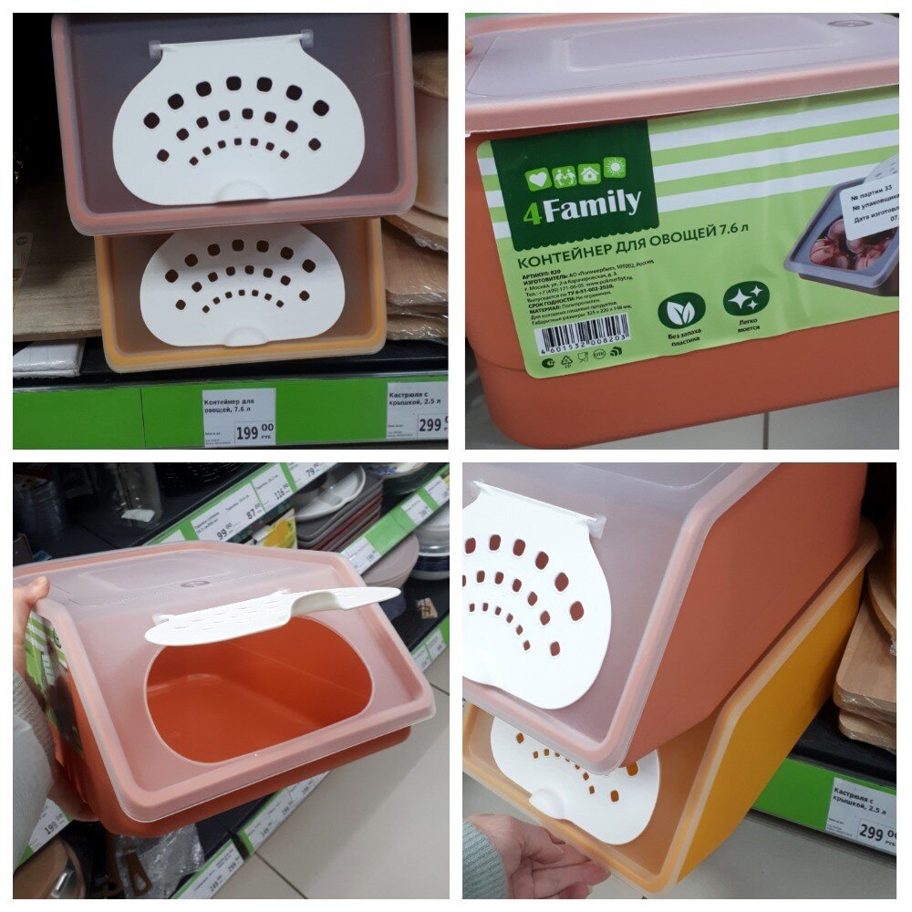 Всем привет. Меня зовут Наталья. Я очень рада видеть вас на своём канале. Сегодня мы с вами прогуляемся по магазину Фикс Прайс, который находится по адресу: город Йошкар-Ола, улица Воинов Интернационалистов, дом 25 в. В этот раз я вам опять покажу море посуды, так что устраивайтесь поудобнее. Желаю всем приятного времяпровождения. Контейнер для овощей стоимостью 199 рублей. Объём контейнера 7,6 л. Состав: полипропилен. Страна изготовления Россия. В магазине 2 варианта. Ковш стоимостью 299 рублей. Диаметр ковша 16 см, объём - 1,3 л. Состав: алюминий с противопригорающим покрытием. Страна изготовления Россия. Сковорода глубокая стоимостью 199 рублей. Диаметр сковороды 14 см. Состав: алюминий с противопригорающим покрытием. Страна изготовления Россия. Сковорода стоимостью 249 рублей. Диаметр сковороды 18 см. Состав: алюминий с противопригорающим покрытием. Страна изготовления Россия. Кувшин мерный с цветной ручкой стоимостью 79 рублей. В магазине 3 варианта цвета. С одной стороны кувшина