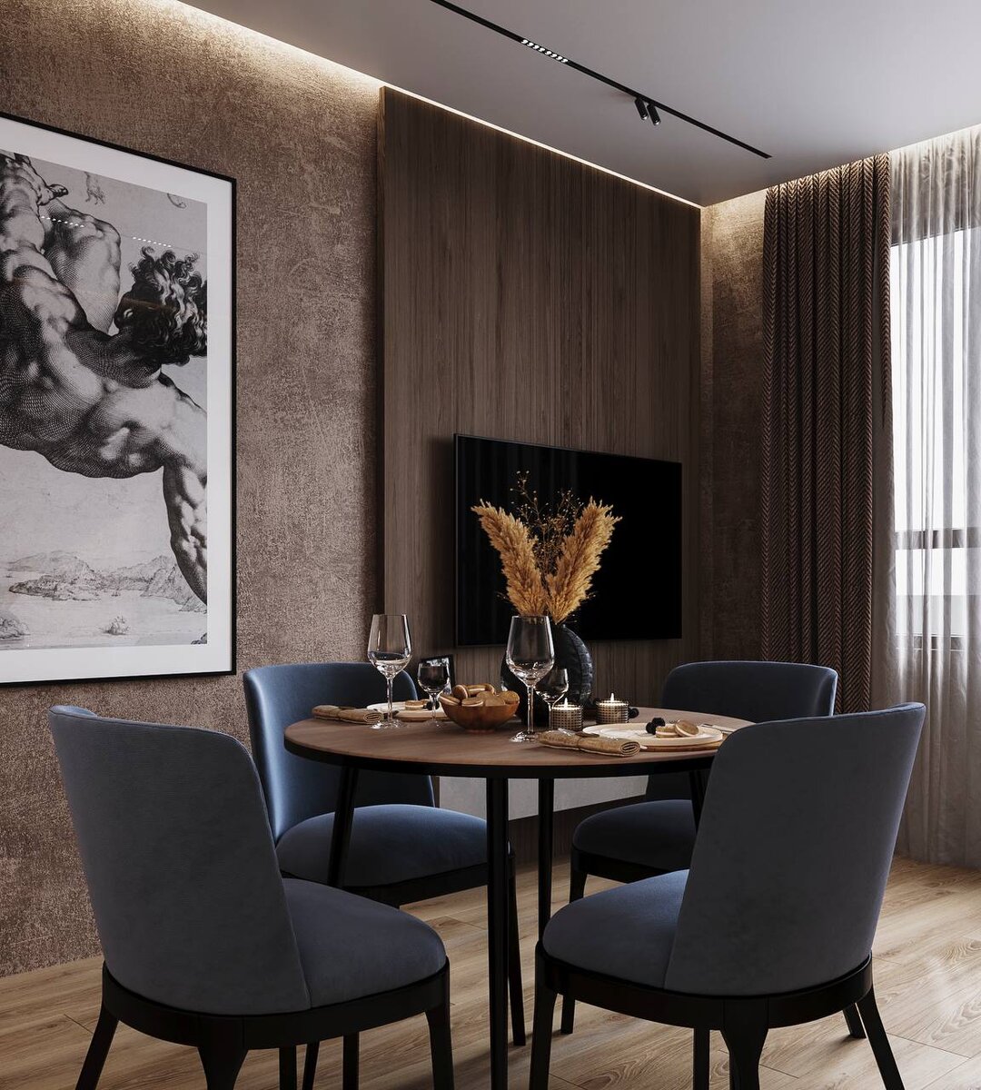 Сделали интерьер теплым и уютным, но при этом современным. Уникальности добавили с помощью фресок, которые будут изготавливаться по индивидуальным размерам 😊