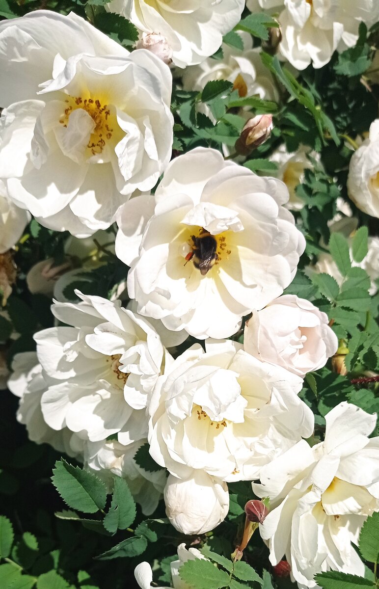 Продолжаем тему неукрывных роз. Сегодня белый цвет. В этих обзорах я перечислю розы независимо от того один раз они цветут или цветут повторно. Самые надёжные. Опять же - мое личное видение. 1. Роза колючейшая. Много у нее названий. Мне нравится финское - роза дня летнего равноденствия. Ничего не надо делать. Можно формировать как угодно. Ничем не болеет. Минус один - только 3 недели цветения с 20 июня. 2 зона. 2. Гротендорст белый. 3 зона. Тоже зимует стоя. Цветет повторно мелкими цветами гвоздиками по 2 см . Гибрид ругозы. Так и выглядит. Куст может быть крупным. Видела по 1,5 метра. У меня растут медленно. Пока метр на метр за 5 лет. Неуязвимая роза. 3. Мадам Плантье. Очень известная старинная роза. Нуазетовая. 1835 год. Аромат бесподобный. Выращивают в наших парках 150 лет. Есть в Павловске. Зимует без укрытия. Куст не выше метра. Однократное обливное цветение 4 недели. Цветы густомахровые. Бутон розовый. Куст округлый. 4 зона. Информации в интернете много. Все пишут , что зиму