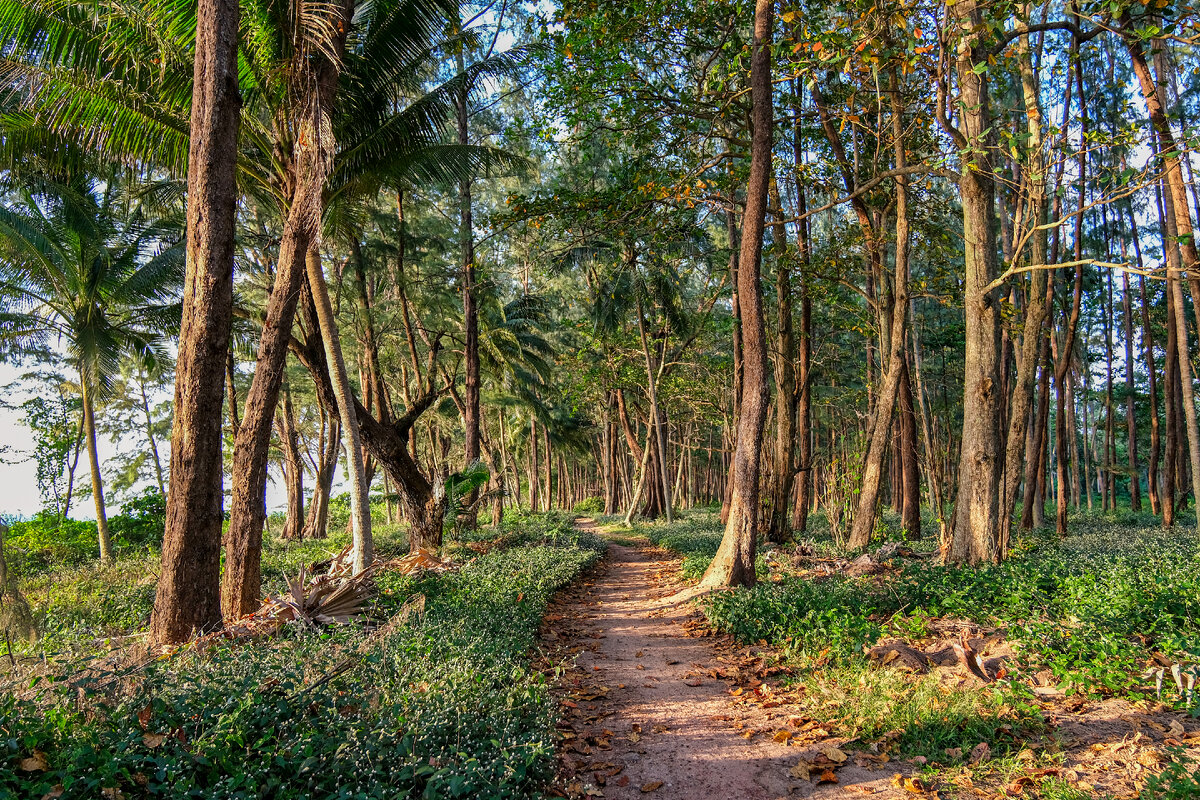 Остров Пхукет в декабре. Май Кхао, здесь длинные безлюдные пляжи с желтым песком и казуариновыми деревьями. На Май кхао не редко бывают волны. Спокойное море можно застать только в высокий сезон с середины декабря по март. Именно в этот период море на Май Кхао наиболее привлекательно для туристов и пляж в лучшем виде. Пляж Май Кхао (Mai Khao) — самый длинный пляж на всем острове Пхукет в Таиланде. Он расположен на северо-западе острова, совсем рядом с аэропортом — взлетная полоса находится буквально за забором от южной части пляжа. Этот пляж, как и соседние Най Тон и Най Янг, частично входит в состав Национального парка Сиринат. Загорающих или купающихся туристов здесь совсем мало, 1-3 человека. Но можно найти место совсем безлюдное и иногда кажется, что он совсем безлюдный. И в этом есть свое очарование и привлекательность этого места. Бесконечный одинаковый пляж идеальное место отдыха для социопатов, с прохладной тенью хвойных деревьев и песчаными дюнами. Людей здесь практически не