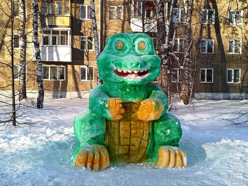 Дракон, Дед Мороз и пушки: курсанты НВВКУ слепили скульптуры из снега в Академгородке