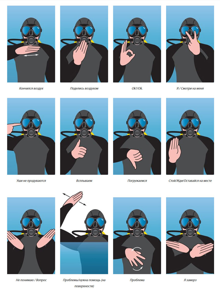 Дайвинг – увлекательное развлечение, требующее соблюдения определенных правил. Несмотря на то, что погружению обучают даже детей, оно относится к экстремальному виду отдыха. В подводной толще опасность может подстерегать повсюду: сбой оборудования, агрессия хищных рыб и др. Как обеспечить безопасность под водой Обучаясь дайвингу, пользователь должен знать, что для безопасного погружения нужно обеспечить себя необходимыми предметами снаряжением, оборудованием. Чем лучше оснащен дайвер, тем проще решать сложные и опасные ситуации под водой. Перед подводной прогулкой рекомендуется проверить свое здоровье и детей (если те будут погружаться вместе с взрослыми). Первые познания в дайвинге лучше приобретать с тренером или профессиональным подводником. Перед тем, как начать первые погружения, следует выучить знаки дайверов. Сигналы под водой помогают ориентироваться при перемещениях и означают определенные слова. С помощью знаков дайверы могут: Дайверы общаются с помощью пальцев, жестами или