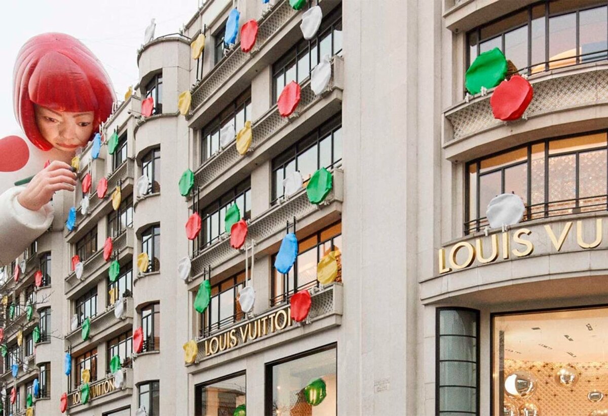 Об интересных и значимых коллаборациях хочется говорить даже спустя годы. Вместе с Анастасией Аксючёнок вспоминаем кейсы, которые определённо войдут в историю как самые запоминающиеся и яркие. Louis Vuitton x Яёи Кусама Поклонники Louis Vuitton помнят первое партнёрство с Yayoi Kusama в 2012 году под творческим руководством Марка Джейкобса. Через 10 лет бренд снова объединяется с художницей, украшая её работами сумки и одежду, созданные Николя Гескьером. Кампания затронула, без преувеличения, весь земной шар — реально и виртуально, а магазины Louis Vuitton превратились в квазигалереи. В Токио, Нью-Йорке и Париже были размещены гигантские инсталляции. На рекламных щитах и трёхмерном анаморфотном дисплее показывали анимационные материалы кампании, а в магазинах появилась массивная реалистичная скульптура Кусамы в жёлтой рубашке в чёрный горошек. Такая стратегия позволила искусству выйти за рамки галерей и сделала искусство доступным везде и всем. Более того, оно, подобно стрит-арту, ворв