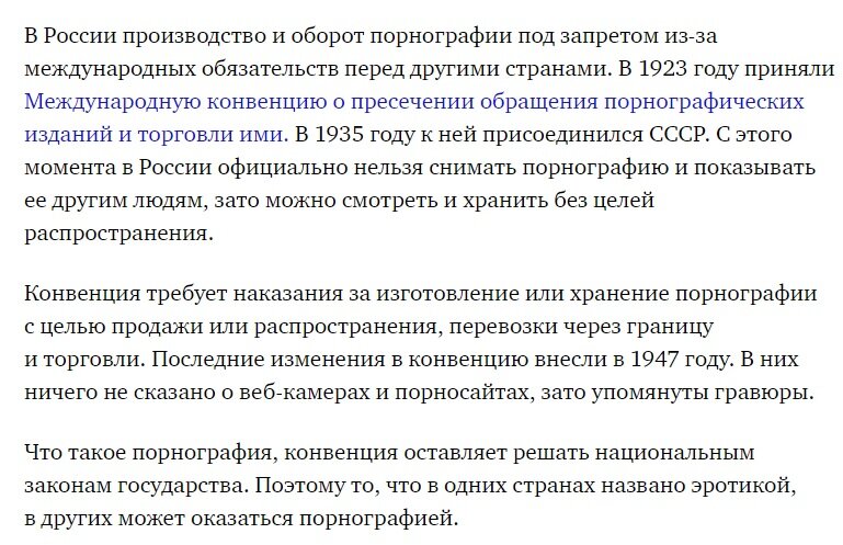 Помню как в прошлом году спикер Гос.Думы Володин, хвалился тем, как ударно поработали наши депутаты приняв огромное количество новых законов и внеся много полезных изменений в ныне действующие законы. Собственно говоря , хвалиться тут не чем, потому что собственно этим Дума и должна заниматься. Было бы глупо, если бы пекарь бегал по улицам и хвалился каждой вновь испечённой булочкой. Но дело не в этом,у меня создаётся ощущение , что у нас законодательная власть и исполнительная , находятся по разные стороны высокого забора и не знают, что делает одна структура и чем занимается вторая. Приведу примеры, у нас в стране действует закон, запрещающий снимать и демонстрировать порнографию и всё что с ней связано . Вот этот закон.