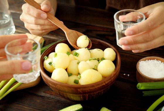 Чтобы замедлить процесс опьянения в новогоднюю ночь, закусывать спиртное следует варенным картофелем, рассказал в эфире программы «О самом главном» на телеканале «России 1» врач и телеведущий Александр Мясников. Такого же эффекта удастся достичь, если перед застольем выпить ложку растительного масла. Но если пить быстрее, чем закусывать, то, конечно, никакой вареный картофель не помогает, — предупредил Мясников. Также медик рассказал о пользе ананаса. По его словам, желудку будет намного легче, если заедать им жирную пищу. Ранее врач-гастроэнтеролог доктор медицинских наук Владимир Неронов предупредил, что на начало опьянения может указывать временная потеря обоняния. Кроме того, временно человек может утратить тактильные ощущения, у него может снизиться слух, дальше он начинает хуже видеть и утрачивает координацию. Чтобы снизить вероятность опьянения, Неронов посоветовал закусывать после каждой выпитой порции. При этом врач-гастроэнтеролог Алексей Боярко предупредил о том, что в новог